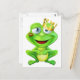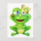 Eine Abbildung eines niedlichen Froschkarikaturenzeichens mit einer Goldkrone mit einem roten Lippenstift auf seinen Lippen bildet einen Kuss