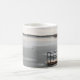 Eine Tasse mit einem Foto eines gefrorenen Sees.