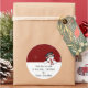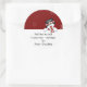 Dieser Aufkleber hat einen roten Hintergrund mit weißen Schneeflocken. Am unteren Ende ist der Hintergrund hell weiß. Über die Trennlinie zu springen ist ein niedlicher Cartoon, der von Frostie dem Schneemann zeichne. Benutzen Sie sie als Geschenketiketten, Aufkleber oder auf jede Art und Weise, die Sie wählen.