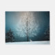 Frostiger Baum im blauen Abend mit Evergreens und einem Kaninchen im Hintergrund.100% Anpassung. Klicken Sie auf die Schaltfläche CUSTOMIZE, um einen der Schriftart oder Grafiken hinzuzufügen, zu verschieben, zu löschen, zu verändern oder zu verändern.