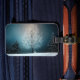 Frostiger Baum im blauen Abend mit Evergreens und einem Kaninchen im Hintergrund.100% Anpassung. Klicken Sie auf die Schaltfläche CUSTOMIZE, um einen der Schriftart oder Grafiken hinzuzufügen, zu verschieben, zu löschen, zu verändern oder zu verändern.