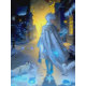 Frostschöpfer einer mondbeschienenen Straße – Ein Winterporträt. Jack Frost schlendert eine stille Winterstraße entlang und malt die Nacht mit wirbelndem Frost und schimmernden Schneeflocken. Seine tierischen Freunde folgen ihm dicht auf den Fersen und beobachten, wie er die Kälte in Magie verwandelt. Warmes Lampenlicht leuchtet hinter ihm und lässt seine eisige Spur funkeln. Diese charmante Szene fängt das Staunen der Winternächte ein und lädt Kinder ein, sich einen sanften Geist vorzustellen, der spielt, während die Welt schläft.