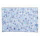Ein winterliches Design von blauen und weißen Schneeflocken auf einem frostig weißen texturierten Hintergrund.