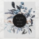 Frosty Dusty Blue Winter Floral Monogram Wedding Weinetikett