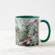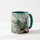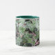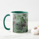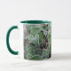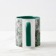 Eine weiße Tasse mit mattiertem Efeu, dunkelgrünem Rand und Griff