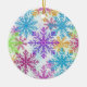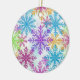 This ornament features a fun and colorful collection of detailed snowflakes, each one bursting with bright winter energy. Shades of blue, purple, pink, green, and gold overlap and blend together, creating a lively flurry that feels joyful and festive. The airy white background makes the colors pop, giving the whole design a crisp and cheerful winter look.