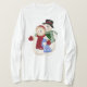 Frostig den Schneemann mit Frau Frosty und Baby Girl Frosty. Sie sind alle in Schal und Fäusten gekleidet. Das Design ist perfekt für den Urlaub oder den Winter.