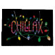 Karo aus diesem lustigen Set von Urlaubslichtern, die mit Frosty the Snowman's Gesichtsausdruck scheinen, umhüllt von dem Wort "Chillax" aus Bonbons!