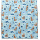 Charming red foxes in scarves wander a snowy blue forest of evergreens and mountains. Whimsical and wintery, perfect for cozy style.