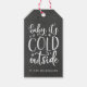 Festliche Weihnachtsgeschenke-Tags bieten "baby it's kalt außen" in weißer handgeschriebener Typografie auf einem Chalkboard-Hintergrund. Personalisieren Sie mit Ihren Namen oder benutzerdefinierten Gruß unten. Bleiben Sie auf der Rückseite, um den Namen Ihres Geschenkempfängers per Hand zu schreiben.