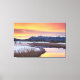 Mit atemberaubender Aussicht auf einen kalten Frozen Fluss mit Schnee auf dem Boden und Himmelsaussicht unter einem orangen und blauen Himmel.auf dieser überzogenen Canvas
