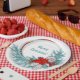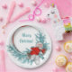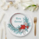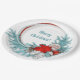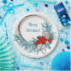 Frozen Ice Blue Christmas Branch Red Poinsettia Pappteller