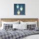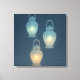 Three frosted glass lanterns float in the air, each containing a soft light that pulses like a winter breath.