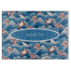 Früchte de mer Muster mit Ihrem Namen; Garnelen, Hummer, Krabben, Muscheln und Fisch auf einem Meereswellen Hintergrund.