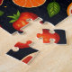 Wunderschönes Fruchtpuzzle, farbenfrohe Niedliche Fruchtmuster Puzzle mit Orangen, Grapefruits, Kirschen, Papaya, Erdbeeren und Grüne Blätter Natur Botanische Kunst