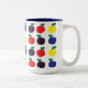 Farbenfrohe Äpfel Obst Zwei-Tone-Kaffee-Tasse von Nisha Prabhu entworfen. Äpfel sind in allen Rottönen, Grüntönen, Gelb, dunkel lila. Äpfel sind die Lieblingsfrucht aller, die das ideale Geschenk für einen Geburtstag oder einen anderen glücklichen Anlass machen. Der Apfel ist die Frucht des Wissens und macht ihn zu einem passenden Geschenk für einen Lehrer.