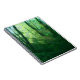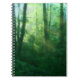 Morgensonne strömt in einen wunderschön grünen Sommerhwald mit massiven Efeu-Bäumen und einer dicken Unterbürstendecke. Ein digital manipuliertes Foto verleiht übergewachsenen Reben, blaugrünem Nebel, goldenen Rochen und Frühlingsgrün eine traumhafte Qualität verlassend.