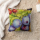 Kunstkissen mit wilden Pflaumen, BlackBerry und Rosehips. "Fruit from the Hedgerow"-Druck stammt aus einem Original-Kunstwerk von Sarah Trett auf heißem Presspapier in Aquarell. Fruchtdruckkissen, um eine Touch von außen in ein Wohnzimmer, ein Familienzimmer oder eine Küche zu bringen.