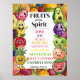 Dieses Christliche Design, Frucht des Geistes, besticht durch eine farbenfrohe Darstellung niedlicher Früchte mit lächelnden Gesichtern und einem Bibelvers für "Früchte des Geistes".