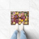 Die Frucht-Erfrischungsmatte hat rosa Grapefruit mit einigen Kiwi neben Pomegranat und Papaya, Mango, Limon und Orangen.Alle sitzen nebeneinander.Diese Bodenmatte hat einen abstrakten Rahmen. Die Text- und Textfarbe kann in eine beliebige Farbe geändert werden, die Sie mit dem benutzerdefinierten Tag gewollt haben.