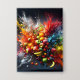 Eine lebendige Explosion frischer Früchte, einschließlich Äpfel, Erdbeeren, Bananen und Beeren, künstlerisch in einem dynamischen wirbelnden Muster angeordnet. Helle Farbspritzen - Rot, Gelb, Grüntöne und Blues - verbinden sich mit den Früchten und schaffen eine dynamische und lebendige Komposition. Der Hintergrund ist dunkel, um die Lebhaftigkeit der Farben und die Frische der Früchte zu steigern, was ein Gefühl von Vitalität und Überfluss hervorruft.