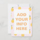 Das Design umfasst kleine illustrierte Pfirsiche in orangefarbener Farbe mit grünen Blätter. Sie tanzten den Fruchttanz, sprangen in Ihr Leben, um Ihnen mit ihren süßen und exotischen Geschmacksrichtungen Nervenkitzel zu geben. Sie können eine Einladung mit einem anderen Schriftart und Stil anpassen, Sie können auch Ihre Ereignisinformationen auf der Kartenrückseite hinzufügen.