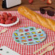 Dieses Design besteht aus verschiedenen Obstsorten, auf blauem Hintergrund gezeichnet und jede Frucht ist in einem farbigen Hintergrund. Dieses Bild ist auf einer Vielzahl von anderen Produkten verfügbar, klicken Sie einfach auf den Link unter dem Foto in der Nähe von 'Über dieses Design'.