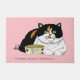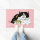 Eine niedliche Calico Katze neben ihrer leeren Essschale wollte früh gefüttert zu werden.