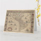 Dieses Design zeigt eine Landkarte von Amerika (einschließlich der Regionen, die von den modernen Ländern der USA, Kanadas, Mexikos, Brasiliens und anderer lateinamerikanischer und karibischer Staaten besetzt sind), die von dem 1617 erschienenen niederländischen Karikaturisten Willem Blaeu (1571-1638) erstellt wurde. Der lateinische Titel der Karte ist "Americae Nova Tabula", was "New Map of American Land" bedeutet. Blaeus Landkarte repräsentiert den unvollständigen und unvollkommenen Staat der geographischen Kenntnisse zum Zeitpunkt ihrer Herstellung, ist jedoch in vielerlei Hinsicht überraschend präzise: So zeigt sie beispielsweise Tierra del Fuego an der Spitze Südamerikas als Insel korrekt an. (Eine niederländische Expedition unter Willem Cornelisz Schouten und Jacob le Maire hatten gerade in den Jahren 1615-1616 die Welt umkreist und eine neue Passage entdeckt - die Straße von Le Maire, die auf der Karte als "Fretum le Maire" dargestellt ist - südlich von Magellans Straße, die beweist, dass Tierra del Fuego tatsächlich eine Insel ist.)