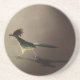 Ein bunter Roadrunner mit einem saftigen rosa Wurm in ihm ist Schnabelrennen über dem Bild.