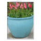 Pink Tulips in einem großen blauen Topf, bereit für den Frühling