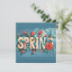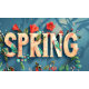 Eine lebendige Spring Holiday Card, umgeben von verschiedenen Blume, farbenfrohen Buchstaben "Spring".