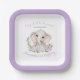 Square Paper Teller nicht nur zum 1. Geburtstag mit einem niedlichen Elefanten und lila Sakura Blume. Personalisieren Sie den Text einfach. Kate Eden Art