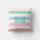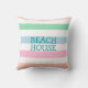 Hier ist ein schön dekoriertes Strandkissengewirr im Frühling oder Sommer Dekorator Streifen Muster in den Farben Rosa, Blau, Grün und Pfirsich. Entworfen, um ein Wohngestaltung-Stück, das eine Touch von Farbe fügt Ihrem Zuhause-Dekorationsschema.