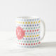 Einfache und niedliche Spring Rainbow Polka Dot Muster Monogram Kaffee Tasse.