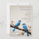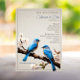 Ein Bluebirds Hochzeitsprogramm zum Thema Bluebirds für Ihre Gäste mit einem Frühjahrsprogramm. Das Programmdesign besteht aus einem Paar Bluebirds, die auf einem Holzzweig ruhen, dessen Feder vor einem texturierten Hintergrund aus Papier blüht. Personalisieren Sie mit dem Bräutigam und den Namen der Braut zusammen mit dem Hochzeitstag und der Reihenfolge der Zeremonie Details. Zusätzliche Hochzeitsarbeit mit diesem Design verfügbar.