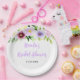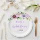 Dieser schöne und elegante Teller zeigt Wasserfarben-Lila-Blumen und Laubwerk. Der Text kombiniert handgeschriebene Schrift und Serifenschriften für einen stilvollen und modernen Look. Dies ist perfekt für eine rustikale Frühlings-Brautparty.