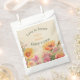 Geben Sie Ihren Hochzeitsgästen eine Leckerei in einer eleganten Aquarelltasche mit einem weichen rosa und pfirsichfarbenen Blumenmuster. Ändern Sie einfach die Vorlage, um Ihren Namen und Datum anzupassen.