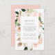 Elegante, blumengeschmückte Hochzeitskarte mit Aquarellblüten, rosa Hydrangeas mit Imitaten Rose Goldfolie und grünen Blätter. Personalisieren Sie die Gästekarten, indem Sie Schlüsseldetails wie Hotelunterkünfte, Informationen über den willkommenen Empfang, Ihre Website, etc. hinzufügen. Entworfen, um sich mit unserer Hochzeitskollektion Spring Blush Floral zu koordinieren.