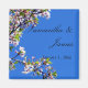 Attraktive Quelle blüht gegen einen blauen Hochzeitsmagnet personalisiert mit Ihren Namen und Datum.