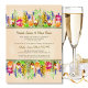 Ein lebendiges Spray von Frühlingsblumen für Ihre Nachbesprechung. Mit einem Hütte Charme und lebhaften Farben, um Ihre eigene Freude und Freude an Ihren jüngsten Nuptials widerzuspiegeln. Die Rückseite der Karte spricht über Sie, wenn Sie verheiratet und wie glücklich Sie sind und Ihre Informationen darüber, wo Ihre Freunde und Liebsten mit Ihnen feiern können. Die Details sind für Sie leicht anpassbar, um Ihre eigenen Informationen nach Bedarf einzubinden.