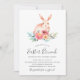 Dieses stilvolle Osterbrunch lädt mit einem Aquarellkaninchen und farbenfrohen Blumenelementen zum Verweilen ein.