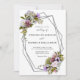 Einladung zur Frühjahrs-Blumengrün Geometrische Hochzeitsfeier, perfekt für eine böhmische Frühlingsfeier. Mit seinen farbenfrohen Blume und Grünpflanzen und modernen geometrischen Designs präsentiert diese Einladung eine atemberaubende Mischung aus lila und rosa Blüten, hellblauen und weißen Akzenten und eleganter Schriftzypografie.