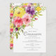 Schönes, handgemaltes Aquarell-Blumendesign mit einem wunderschönen rosa, lila-gelben Blume-Set auf weißem Hintergrund. Dreh unsere Einladung zu einem koordinierenden Rücken für eine besondere Touch. Besuchen Sie unseren Shop, um unsere gesamte Frühjahrsgartenkollektion zu sehen.
