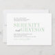 Elegantes modernes, minimalistisches Typografie-Design in hellgrün und dunkelgrau Farbe, und das Paarmongramm auf der Rückseite, einfach und stilvoll. Ideal für elegante moderne Hochzeit und Frühjahrsheirat.
