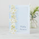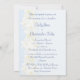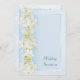 Seitliche Randgestaltung von cremefarbenen weißen Narzissen mit Zitronengelben Trompeten auf einem blassblauen, schattigen Hintergrund und einem Rand mit silbergrauem Schattierfaden (beachten Sie, dies ist keine silberne Tinte, sondern ein Schatteneffekt). Der Text ist in einem passenden dunkelblauen formalen Skript, mit allen Zeremonien und Empfang Details auf der Rückseite, um auszufüllen. Auf dem weißen Grundstock, der leicht zu wechseln ist.