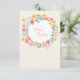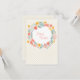 Ein bezaubernder Blumenkranz mit Frühlingsblumen auf beigem Polka-Punkt-Hintergrund. Benutzen Sie es als Dankkarte oder als Einladung zu einer Feier.Die Karte lässt sich leicht mit Ihrem Text, Schriftart, Schriftart, Papierform und der Auswahl von sechs Papiertypen anpassen.
