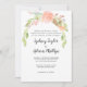 Diese feierliche Hochzeitseinladung vom Frühjahr ist perfekt für eine elegante Hochzeit. Das moderne Frühling- oder Sommerdesign besticht durch elegante, pastellfarbene, pastellfarbene Pfannkuchen und schlanke grüne Blätter mit einer Touch rustikalen Landes.
