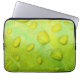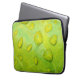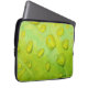 Dieser 13" Laptop-Sieb zeigt ein originelles abstraktes Foto von ZoeSPEAK von Regentropfen auf einem Blatt. Im näheren Foto sehen wir die Beschaffenheit und die Adern des Blattes in den Konturen der Wassertropfen vergrößert. Das leuchtend gelbe grüne Blatt reflektiert das Blau und Gelb des Himmels und des Sonnenlichts.