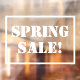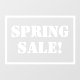 Dieses "Spring Sale" Window Cling Graphic ist fett genug, um anzukündigen, dass Ihr Unternehmen einen Verkauf hat. Bekanntmachung über den Verkauf von Shops. Weiß auf klarem Hintergrund.